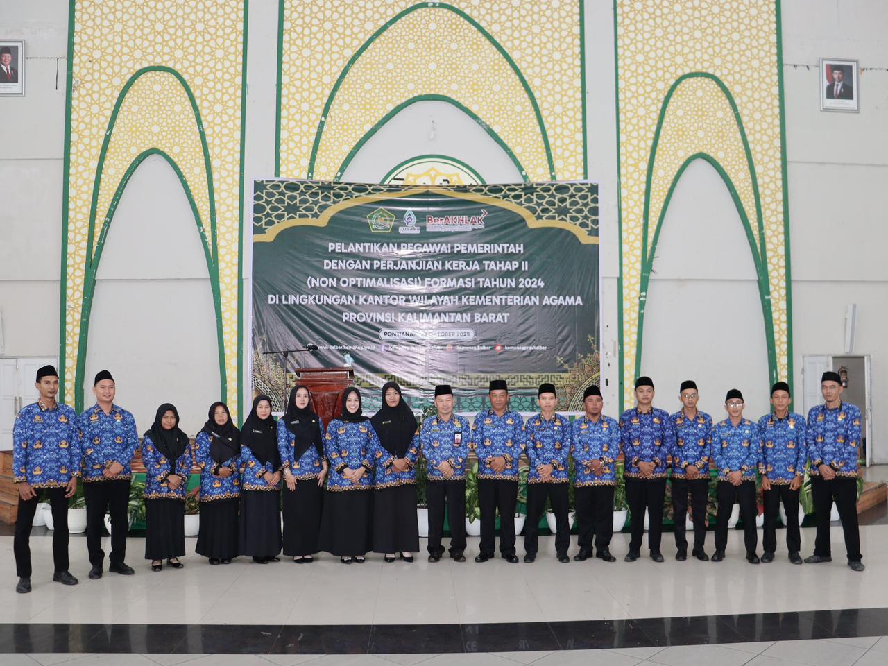 Pontianak (Kemenag Kalbar) – Kepala Kantor Kementerian Agama Kabupaten Melawi, Anuar Akhmad, menghadiri acara Pelantikan Pegawai Pemerintah dengan Perjanjian Kerja (PPPK) Tahap II Non-Optimalisasi Formasi Tahun 2024 di lingkungan Kantor Wilayah Kementerian Agama Provinsi Kalimantan Barat. Kegiatan ini berlangsung di Aula Asrama Haji Pontianak pada hari Kamis, 23 Oktober 2025, dan dilaksanakan secara serentak di seluruh Indonesia melalui media Zoom Meeting.