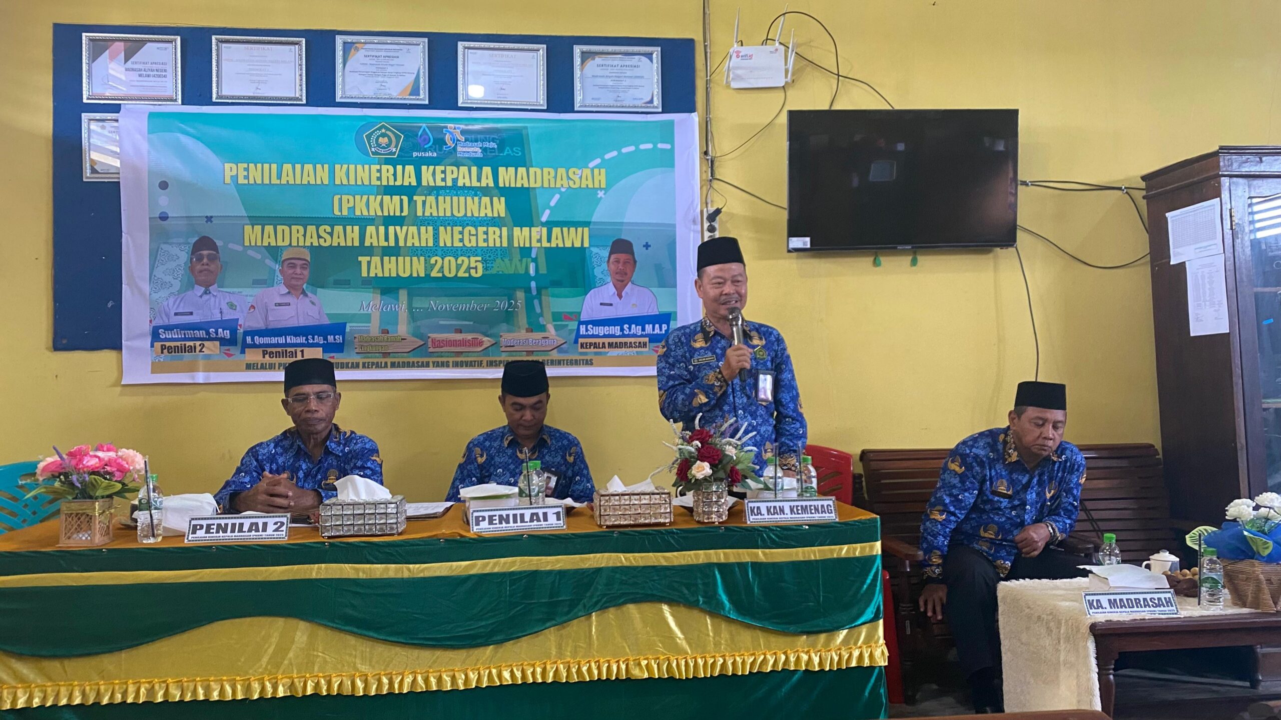 Melawi- Kantor Kementerian Agama Kabupaten Melawi menyelenggarakan Penilaian Kinerja Kepala Madrasah (PKKM) terhadap Kepala Madrasah Aliyah Negeri (MAN) Melawi pada hari Senin, 17 November 2025. Kegiatan ini merupakan agenda rutin tahunan yang bertujuan untuk mengukur dan meningkatkan kualitas kepemimpinan kepala madrasah dalam mengelola satuan pendidikan.