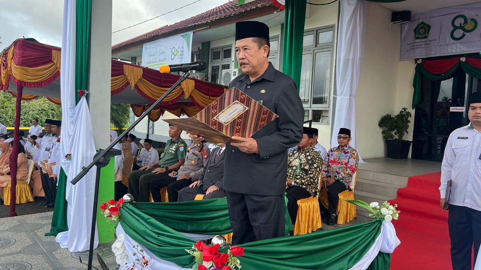 Kepala Kantor Kementerian Agama Kabupaten Melawi Anuar Akhmad, menyampaikan apresiasi kepada seluruh pihak yang telah mendukung terselenggaranya apel dan rangkaian kegiatan HAB ke-80. Ia berharap momentum ini dapat semakin memperkuat sinergi antara Kemenag, pemerintah daerah, dan masyarakat.