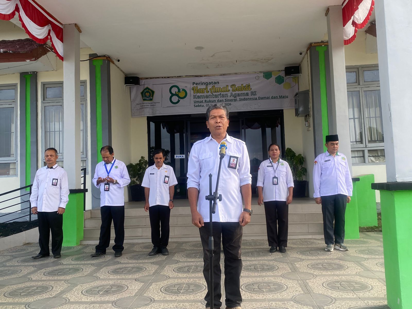 Melawi (Kemenag Melawi) — Apel pagi kembali dilaksanakan di halaman Kantor Kementerian Agama Kabupaten Melawi pada Selasa (20/1/2026). Kegiatan rutin tersebut diikuti oleh seluruh Aparatur Sipil Negara (ASN) di lingkungan Kemenag Melawi sebagai upaya menjaga kedisiplinan dan memperkuat semangat kebersamaan.