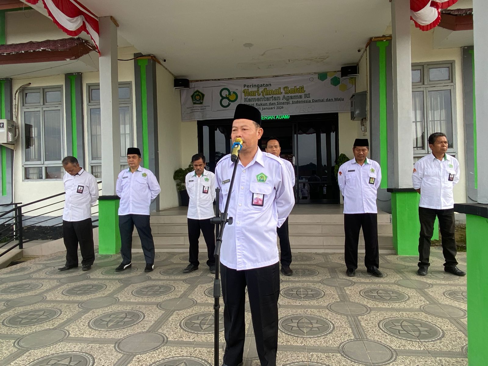 Melawi (Kemenag Melawi) — Apel pagi kembali dilaksanakan di halaman Kantor Kementerian Agama Kabupaten Melawi pada Senin (19/1/2026). Kegiatan ini diikuti oleh seluruh ASN dan pegawai di lingkungan Kemenag Melawi.