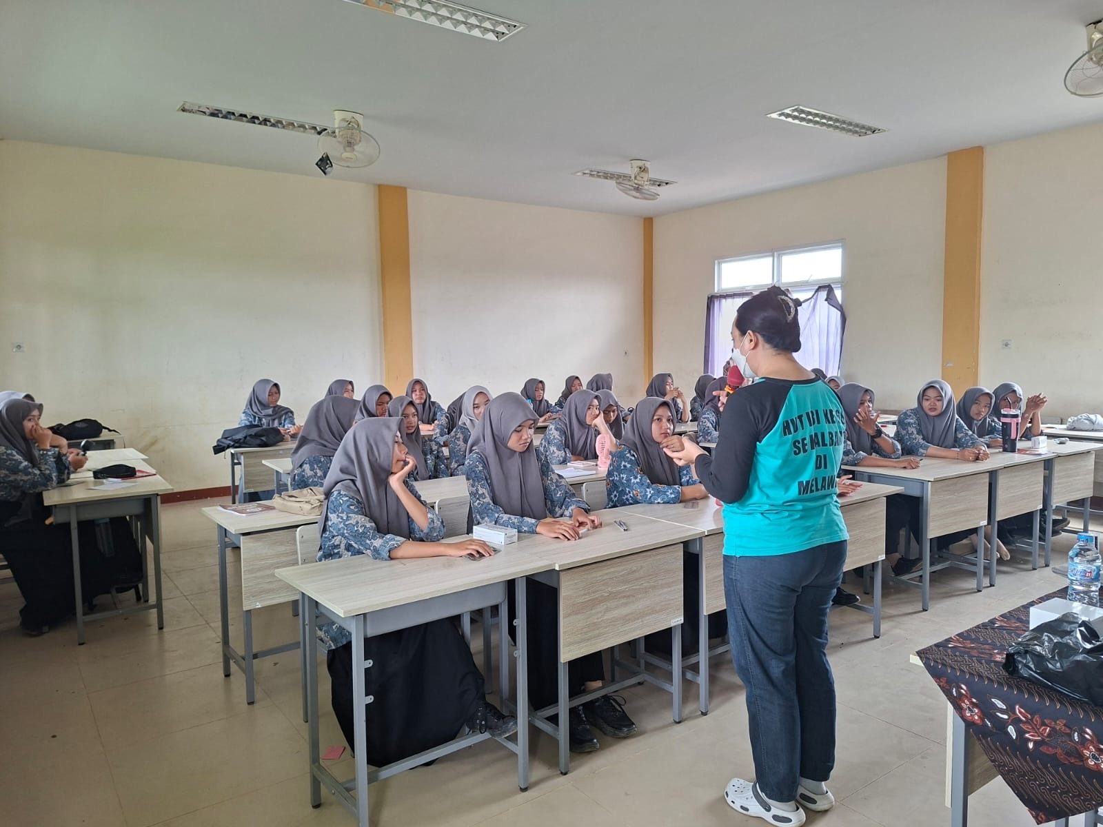 Kegiatan diawali dengan penyampaian materi edukatif seputar kesehatan remaja putri, yang meliputi pentingnya pola makan sehat, pengaturan jam istirahat, serta penerapan kebiasaan hidup bersih dan sehat dalam kehidupan sehari-hari. Materi disampaikan secara interaktif sehingga siswi dapat memahami pentingnya menjaga kesehatan sejak usia remaja.