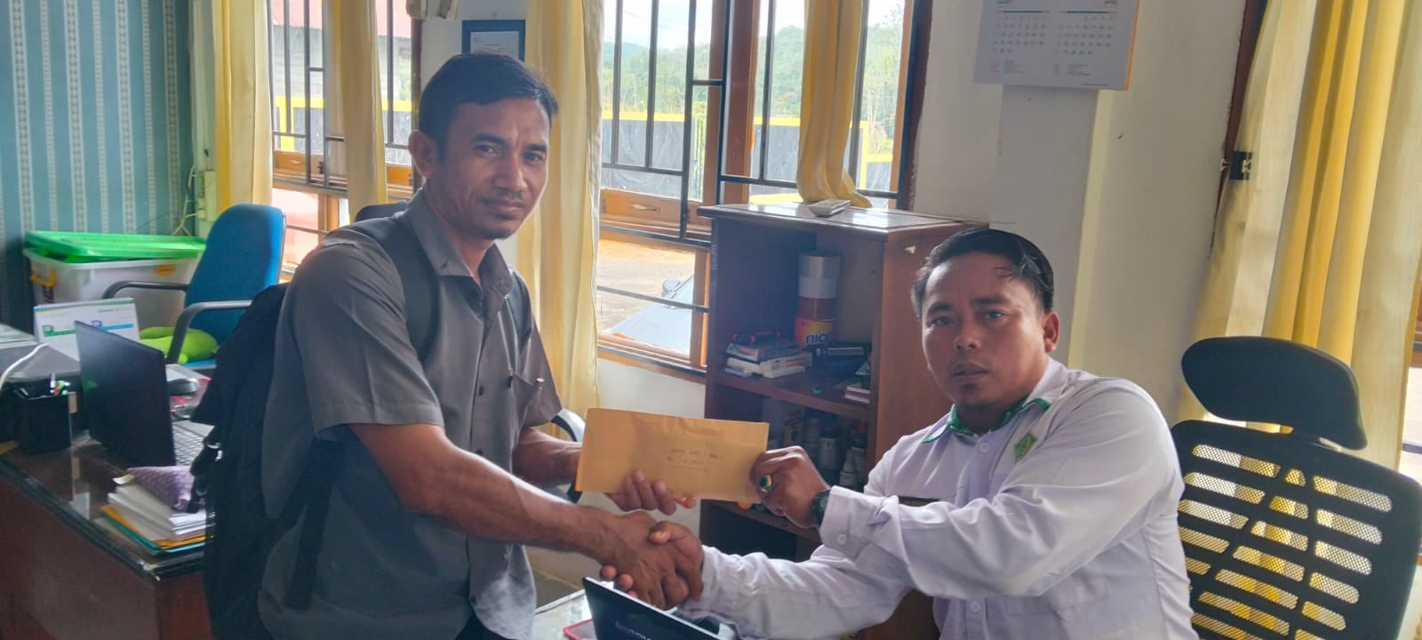 Infaq tersebut diserahkan langsung oleh Zainudin, selaku guru MTsN 2 Melawi, kepada Abdullah Romadon, pegawai Bimas Islam Kemenag Melawi yang mewakili UPZ Kemenag Melawi sebagai penerima.